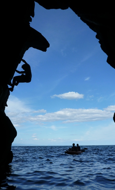 Из «водных процедур», предложенных KRM, одной из самых интересных является «дип вотер соло». Несмотря на несколько замысловатое название, все просто: приплываешь на лодке к скале, лезешь как можно выше и прыгаешь в воду. Некоторой пикантности добавляет отсутствие страховки: покупаться можно несколько раньше, чем планируешь. Тут мне очень пригодился водостойкий фотоаппарат, все остальное снимала компактным LumixDMC-G5.
